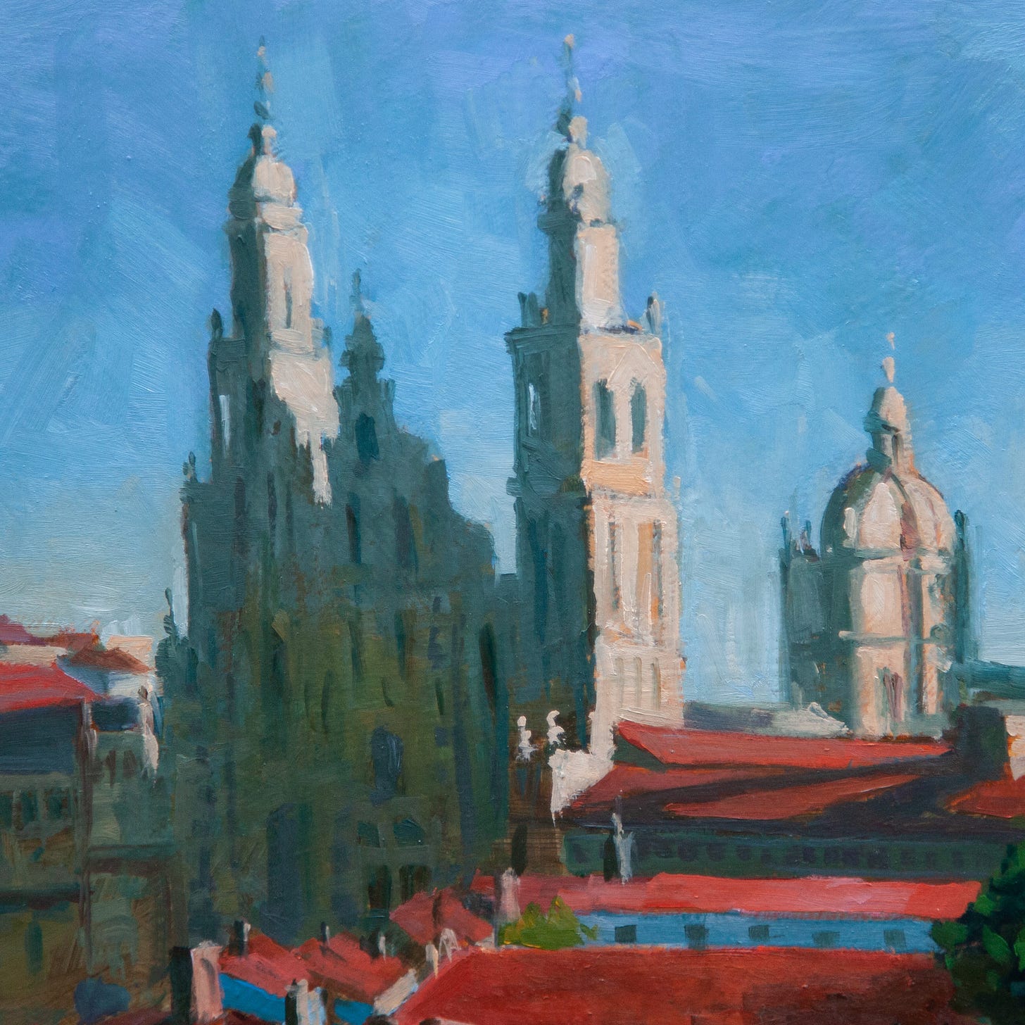 I gazed toward the imposing silhouette of the twin-towered cathedral, faded and blue on the horizon.